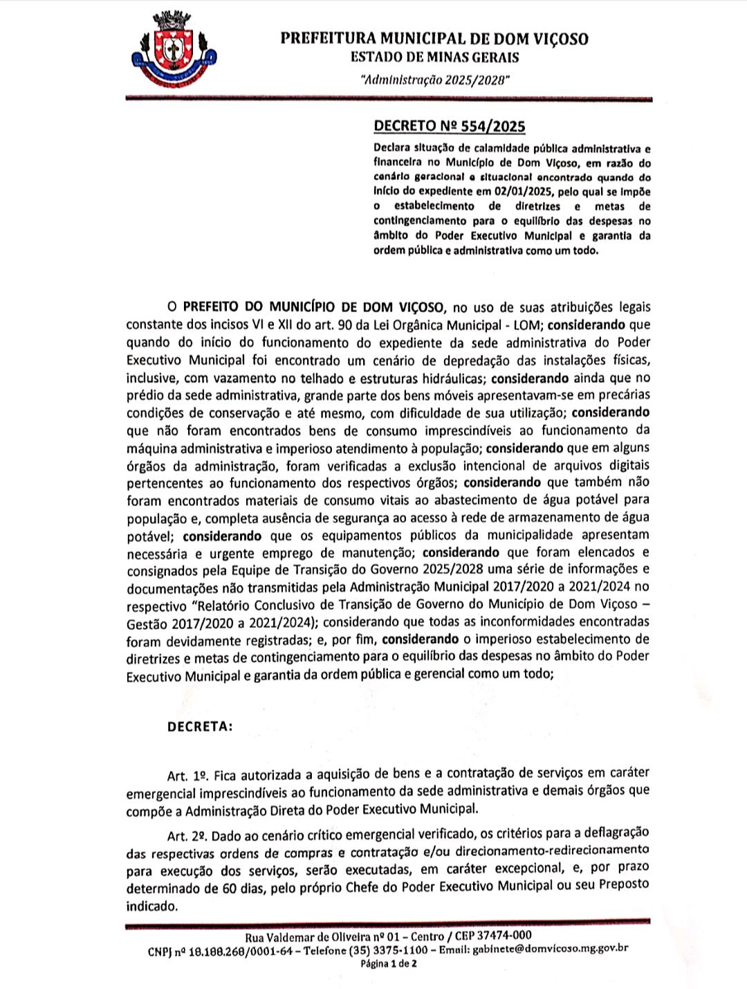 Hoje, 02 de janeiro de 2025, foram realizadas algumas visitas para mostrar à população, a atual situação dos prédios públicos em Dom Viçoso.