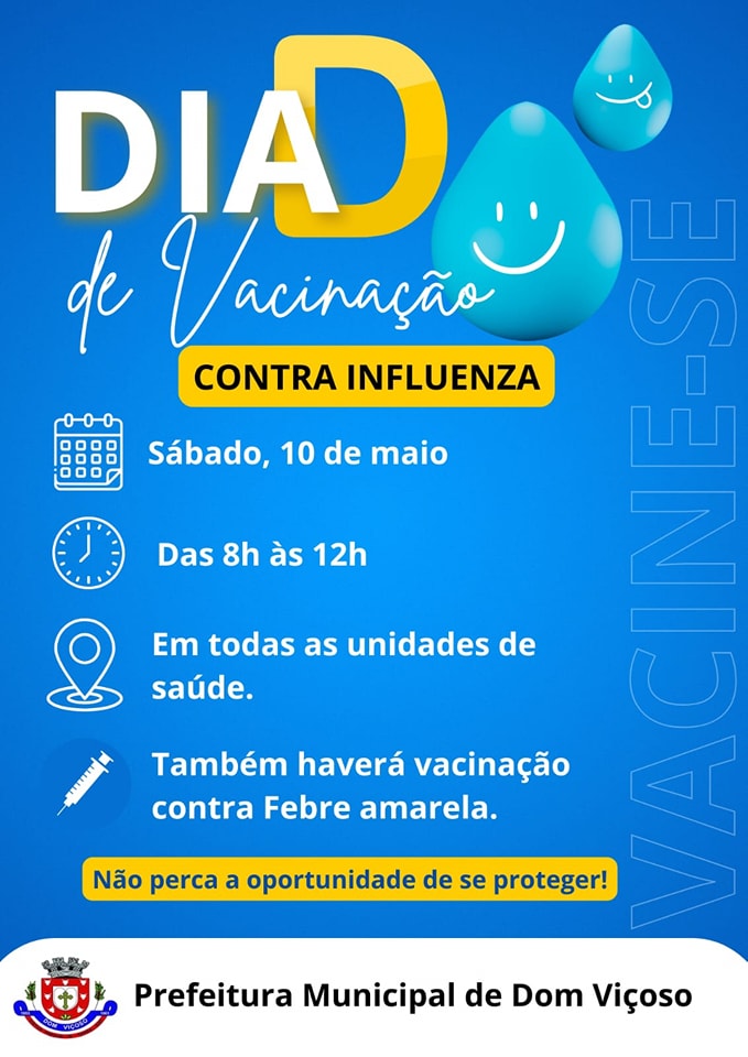 É DIA D DE VACINAÇÃO EM DOM VIÇOSO!