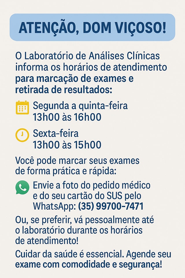 O Laboratório de Análises Clínicas informa os horários de atendimento