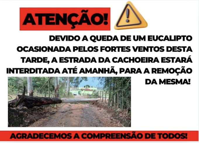 Atenção – Interdição da Estrada da Cachoeira! admin2024-10-17T13:00:10+00:00 Atenção – Interdição da Estrada da Cachoeira!admin2024-10-17T13:00:10+00:00