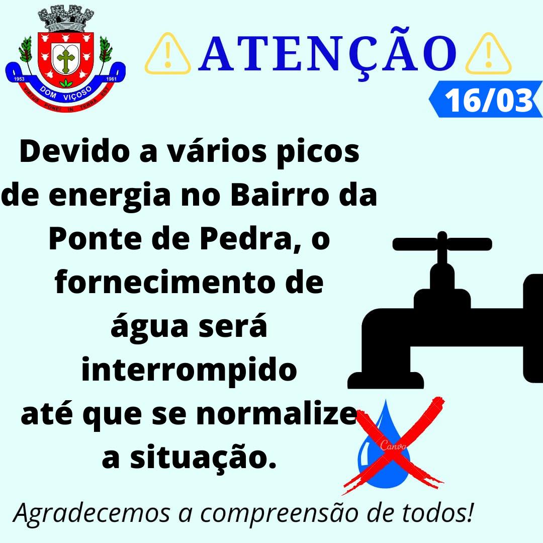 Atenção moradores do Bairro da Ponte de Pedra, interrupção no