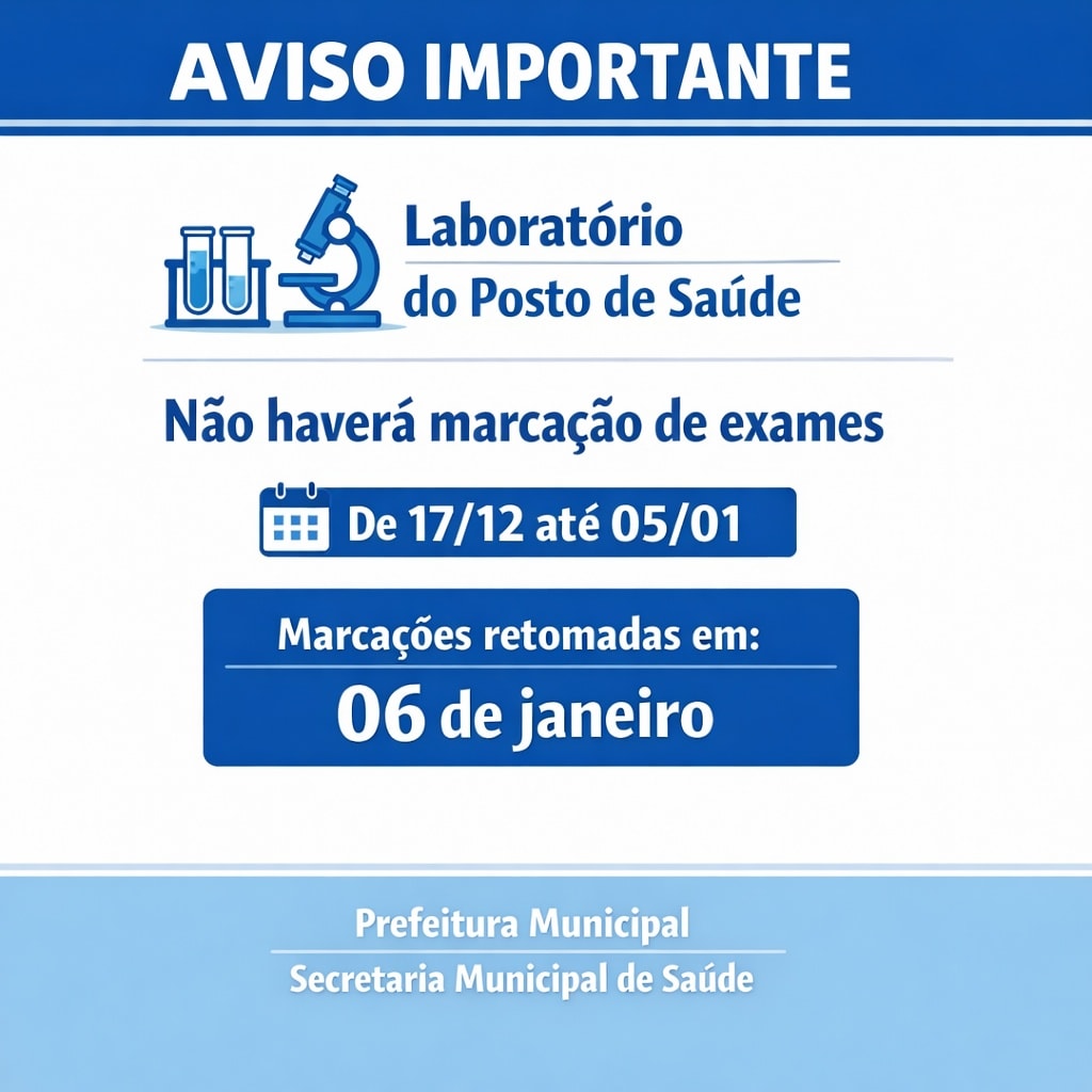 Informamos que não haverá marcação de exames laboratoriais no Posto