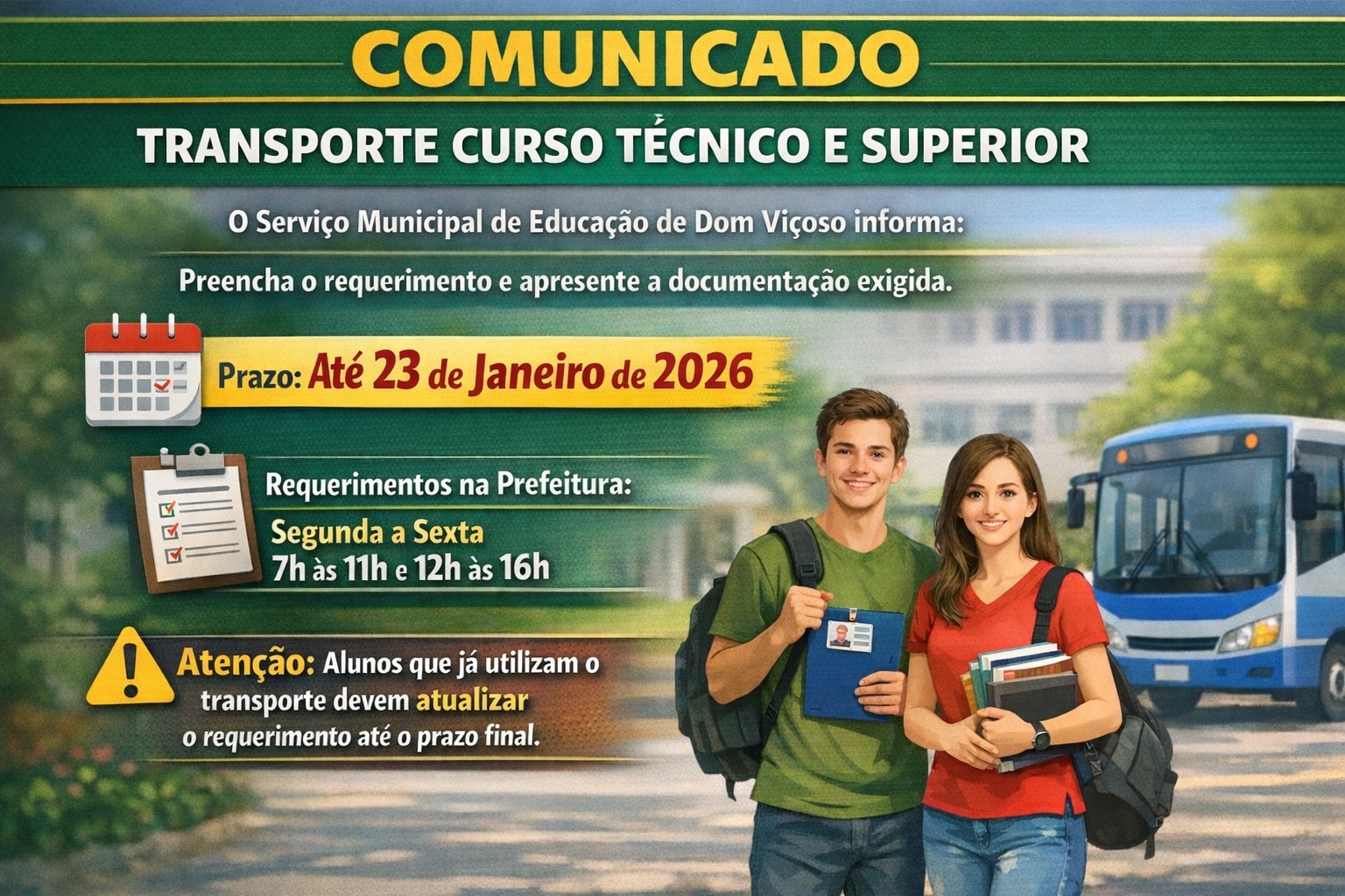📢 COMUNICADO OFICIAL – TRANSPORTE PARA CURSOS TÉCNICOS E SUPERIORES
