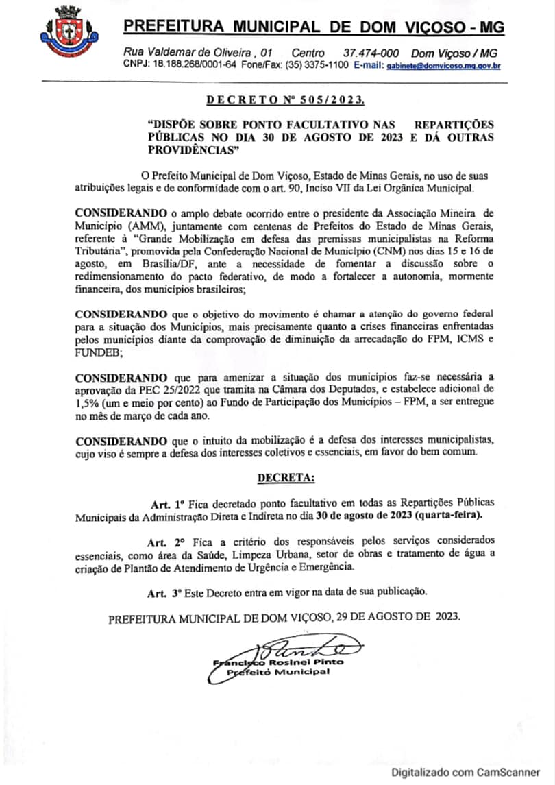 Dia 30 de agosto de 2023 (quarta-feira), ponto facultativo em