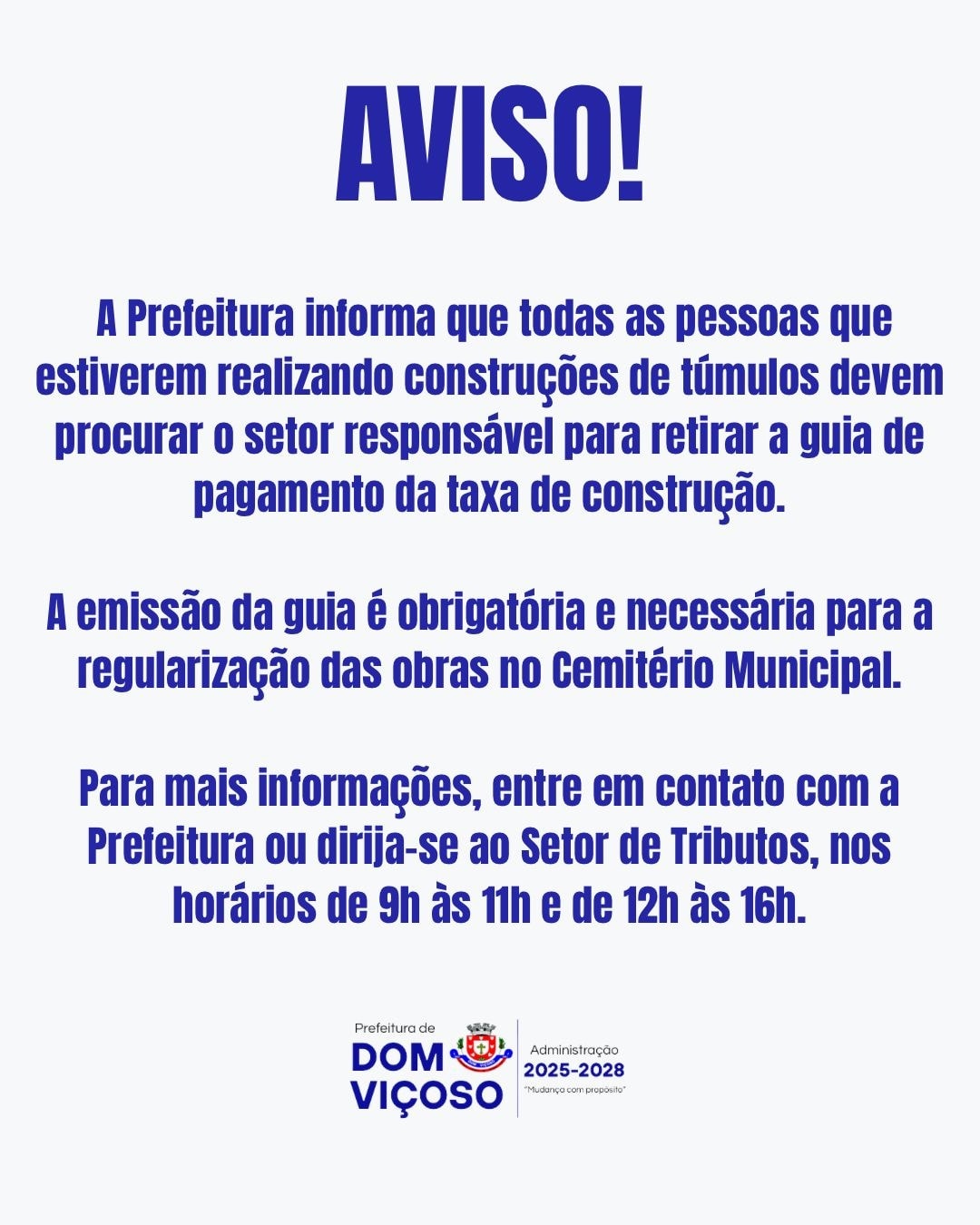 A Prefeitura Municipal de Dom Viçoso informa que todas as