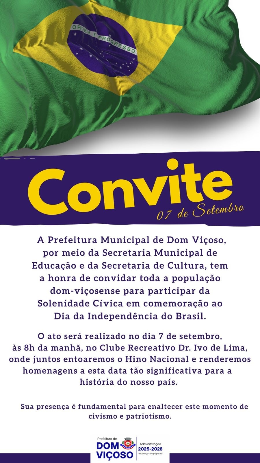 A Prefeitura Municipal de Dom Viçoso, por meio da Secretaria